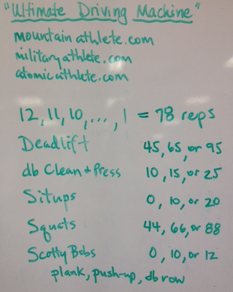 Now, after the first month of training, we'd like you to start using some heavier loads in order to increase the intensity and force your system (nervous, muscular, endocrine, skeletal, etc.) to adapt and grow. So, the MWF will spend the next couple weeks working in the 3's. The TThS crew will drop down to 5's. Both of these rep ranges put you square in the strength-building band, which is our goal (with a little power, too, as an added bonus).